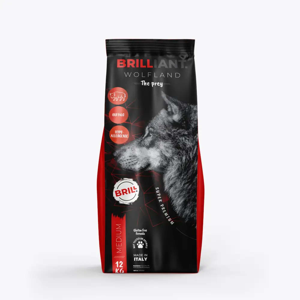 A Brill Wolfland Buffalo egy szuperprémium minőségi kutyatáp, amelyet kifejezetten közepes és nagytestű felnőtt kutyák számára fejlesztettek ki. A receptúra bivalyhúsban gazdag, gluténmentes, és hypoallergén összetételének köszönhetően ideális választás lehet érzékenyebb emésztésű vagy ételallergiára hajlamos kutyák számára.
