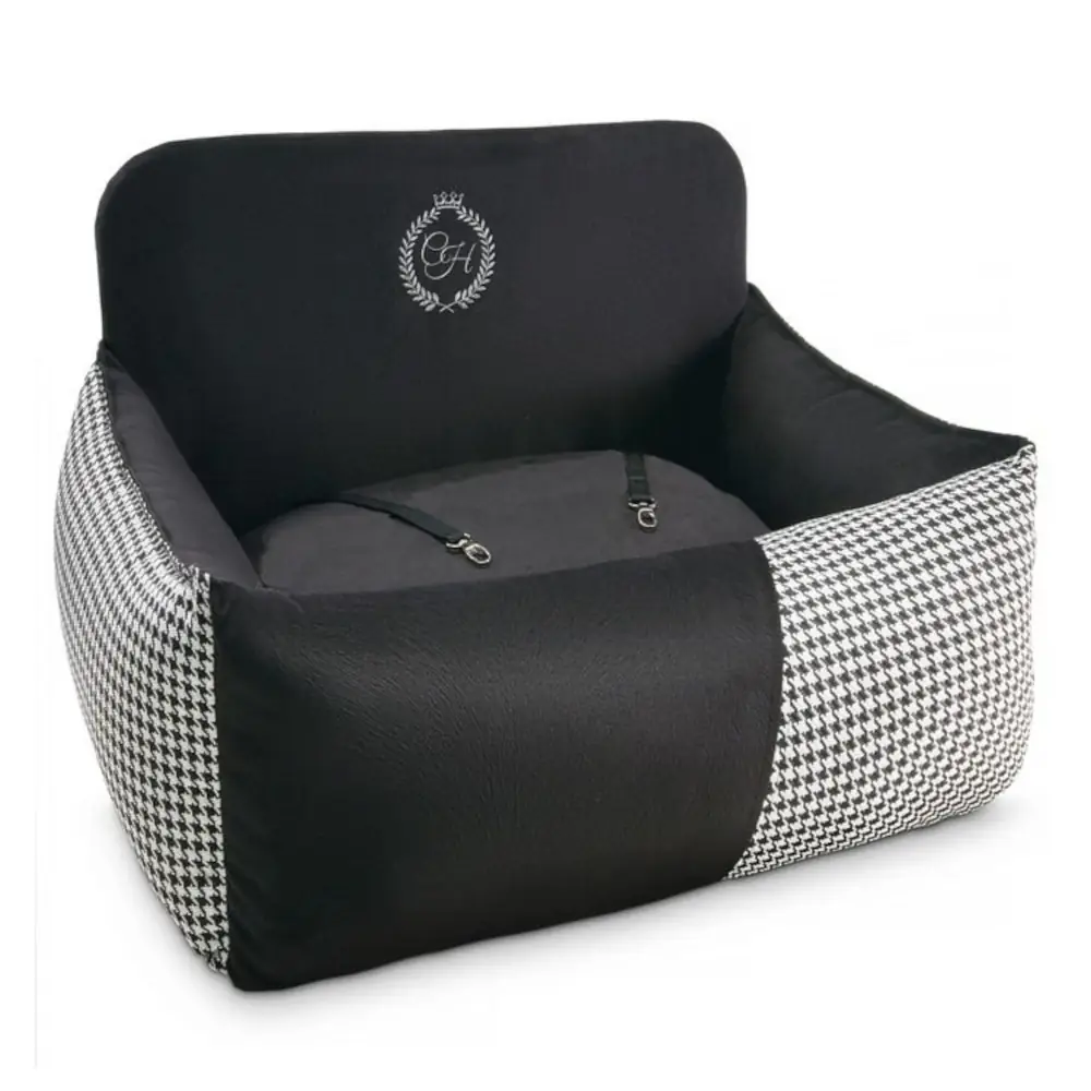 A Chloe’s Home Porto fekete kutya / cica autósülés tökéletes választás, ha szeretnéd, hogy kutyád vagy cicád kényelmesen és biztonságosan utazzon veled. A Porto kollekció a modern bársony és a klasszikus pásztorkockás minta kombinációját ötvözi. Így egyszerre divatos és elegáns kiegészítője lesz autód belső terének.