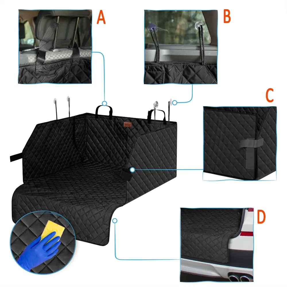 A védőhuzat két réteg, ultrahangosan steppelt poliészter anyagból készült, a belső részben pedig vékony poliészter vatelinréteg gondoskodik a kényelmes, puha tapintásról és a további védelemről. Az anyag erős, strapabíró, és ellenáll a szennyeződéseknek, nedvességnek – így tökéletes választás kutyák, egyéb háziállatok, sporteszközök vagy akár kerti eszközök szállításához is.