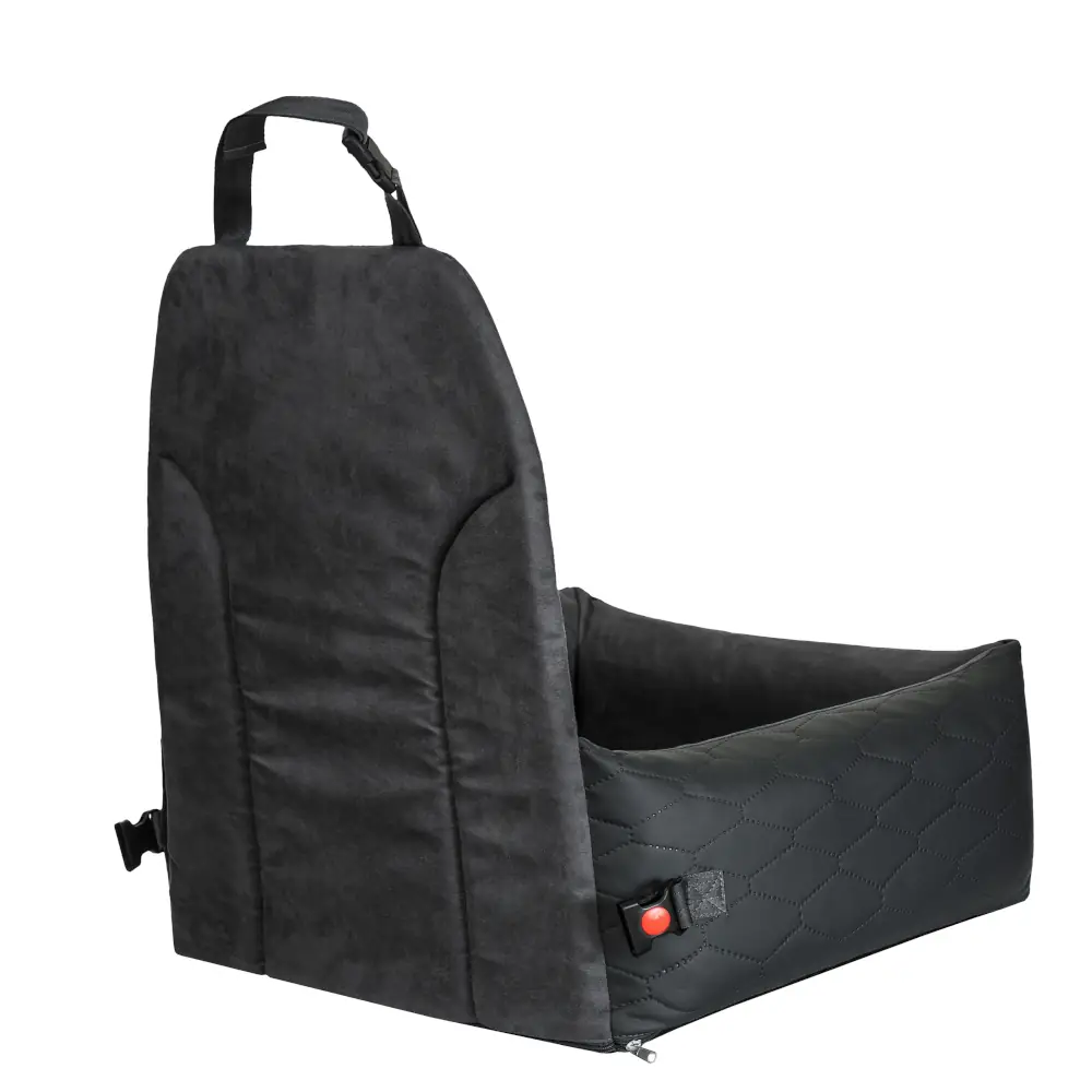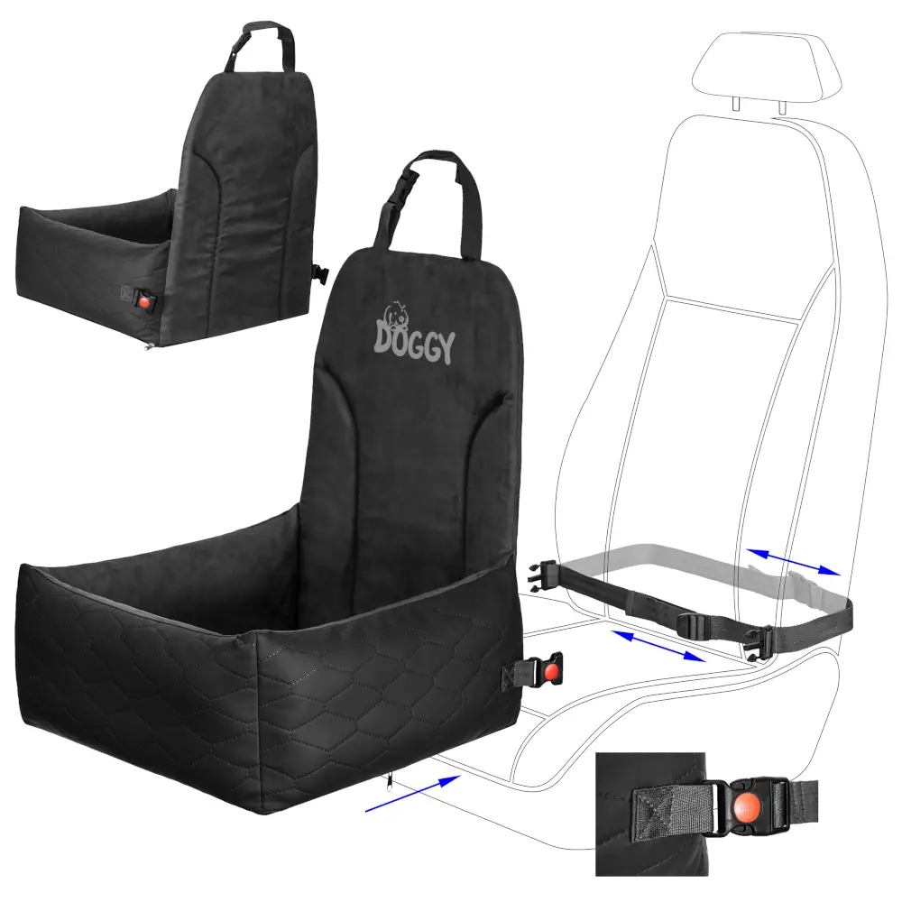 Az első ülés háttámláját és fejtámláját körbefogó rögzítőpántokkal szerelhető fel, erős csatokkal. Az alján található csúszásgátló réteg tovább növeli a stabilitást. A belső tér puha, kényelmes, így a kutya nyugodtan pihenhet akár hosszabb utak során is.