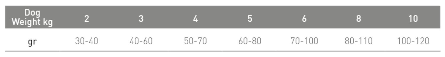 Szárazon adagold az etetési útmutató szerint. Mindig biztosíts friss ivóvizet kutyád számára.