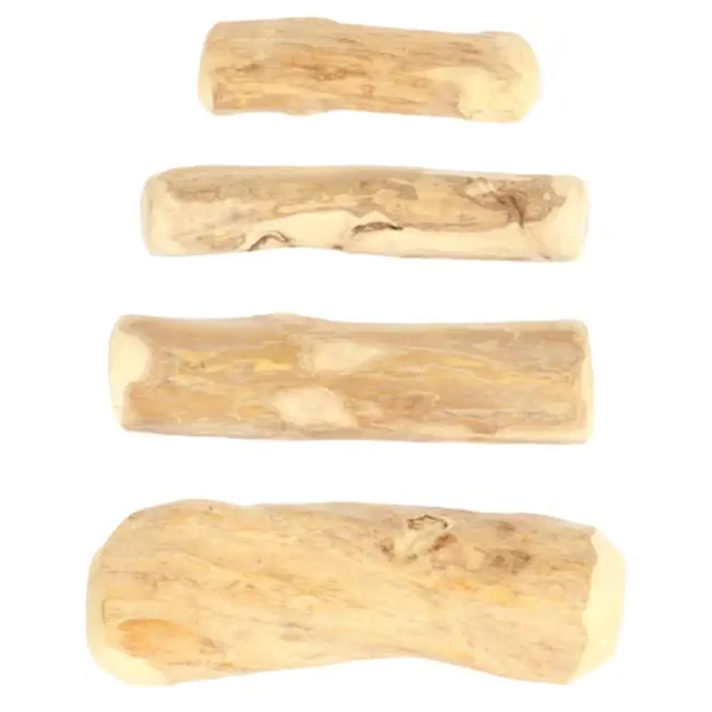 A rágás során a fa enyhén dörzsöli a fogakat, így segít eltávolítani a lepedéket, és megelőzni a fogkőképződést – mindezt vegyi anyagok nélkül. - A fellazult rostok könnyen emészthetők: A rágás során felszabaduló farostok nem károsak – ellenkezőleg, kíméletesen haladnak át az emésztőrendszeren, így nem jelentenek veszélyt a kutya egészségére.