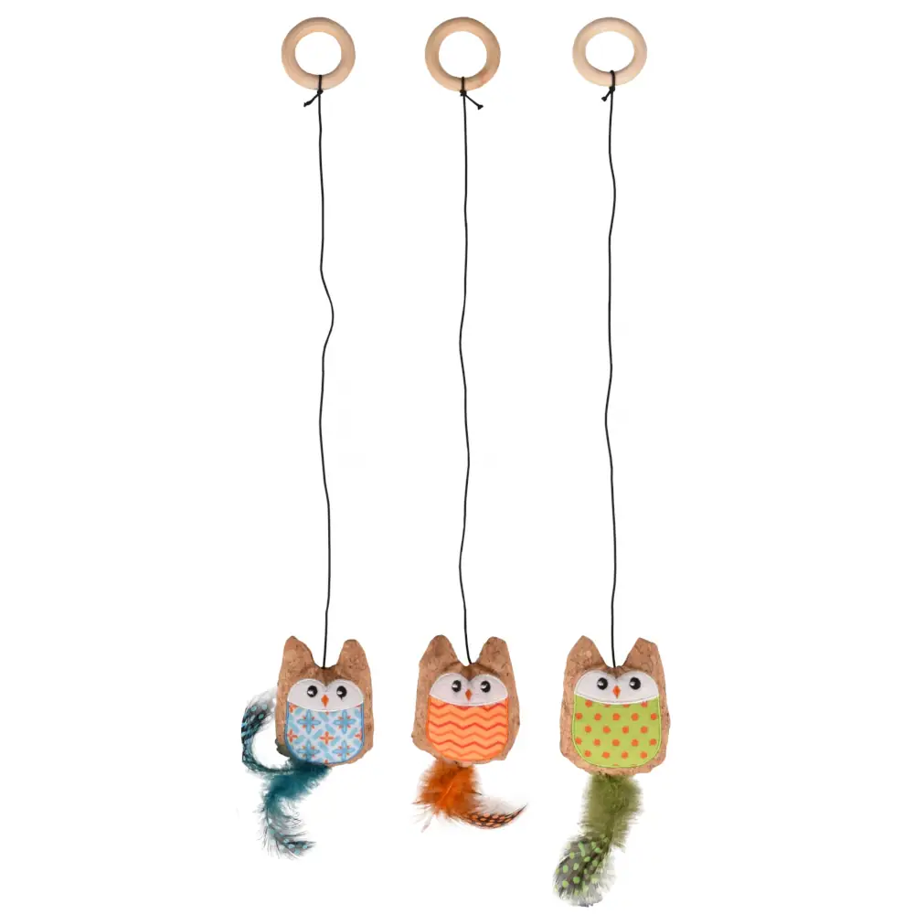 A lógó kötélnek köszönhetően a bagoly mindig mozog, amikor a macska hozzáér, ezzel ösztönözve az ugrásra, kaparásra és csapkodásra. A tollak és a különleges kialakítás felébresztik a cicák természetes vadászösztönét, így hosszú ideig lekötik a figyelmüket.