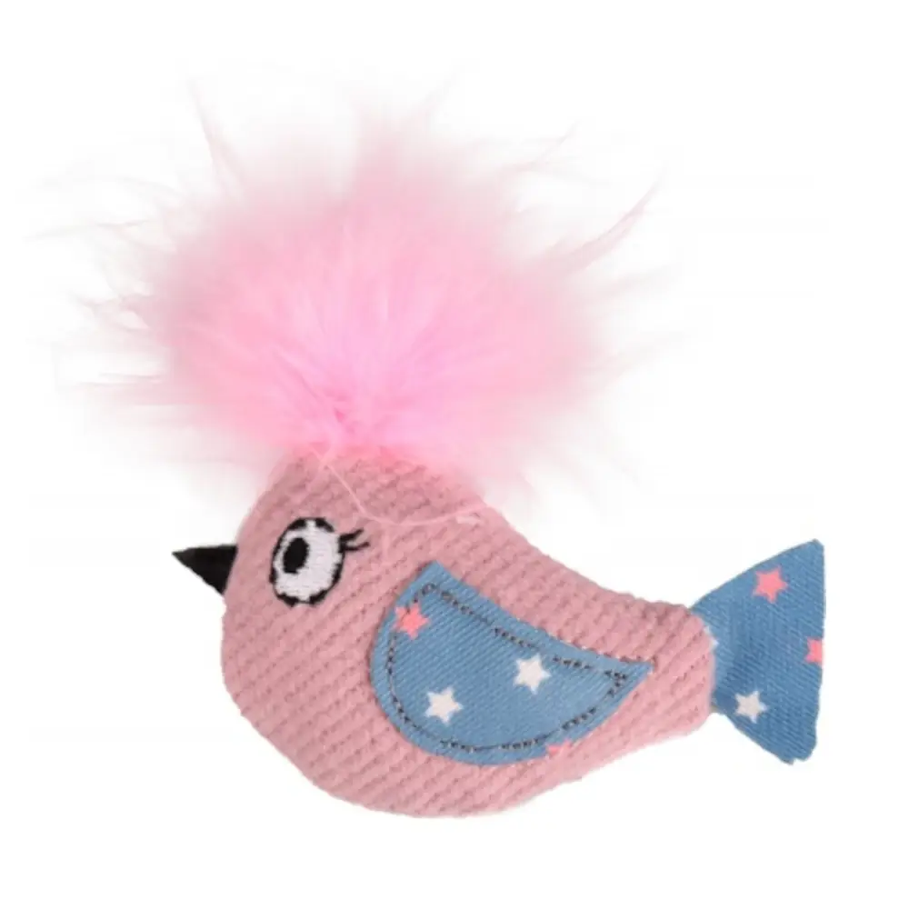 Ez a vidám textil macskajáték garantált szórakozást nyújt kedvencednek! A játékba épített csikorgós hang és a hozzáadott macskamenta felkelti a cica figyelmét, a színes tollak pedig ösztönzik a vadászösztönét.