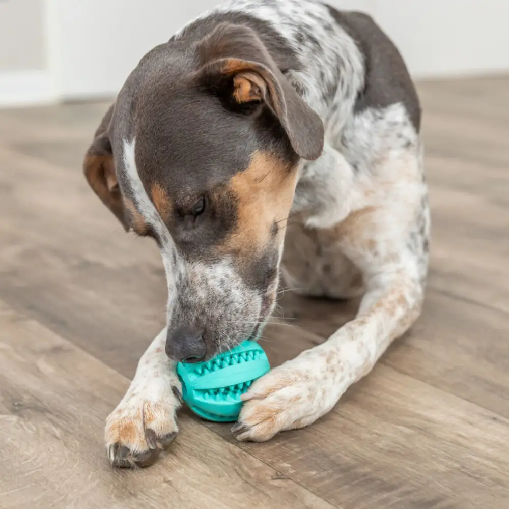 A Trixie Denta Fun Baseball Labda mentás ízesítéssel tökéletes választás kutyád szórakoztatására és szájhigiéniájának megőrzésére. A természetes gumiból készült, masszírozó felületű labda játék közben gyengéden tisztítja a fogakat és serkenti az íny vérkeringését. A friss mentás aroma segít csökkenteni a kellemetlen leheletet, így játék közben is friss marad a kutyád szája.