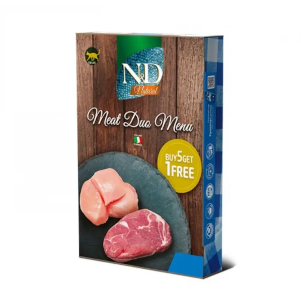 Válaszd az N&D Cat Meat Duo Menu válogatást, ha természetes, ízletes és kiegyensúlyozott nedves eledelt keresel cicádnak!