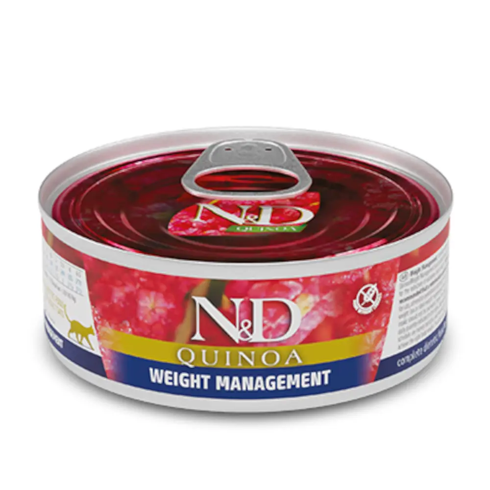 Ha szeretnéd, hogy cicád egészségesen és vitalitással érje el az ideális testsúlyát, az N&D Quinoa Cat konzerv Weight Management 80g kiváló választás.