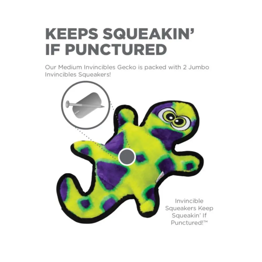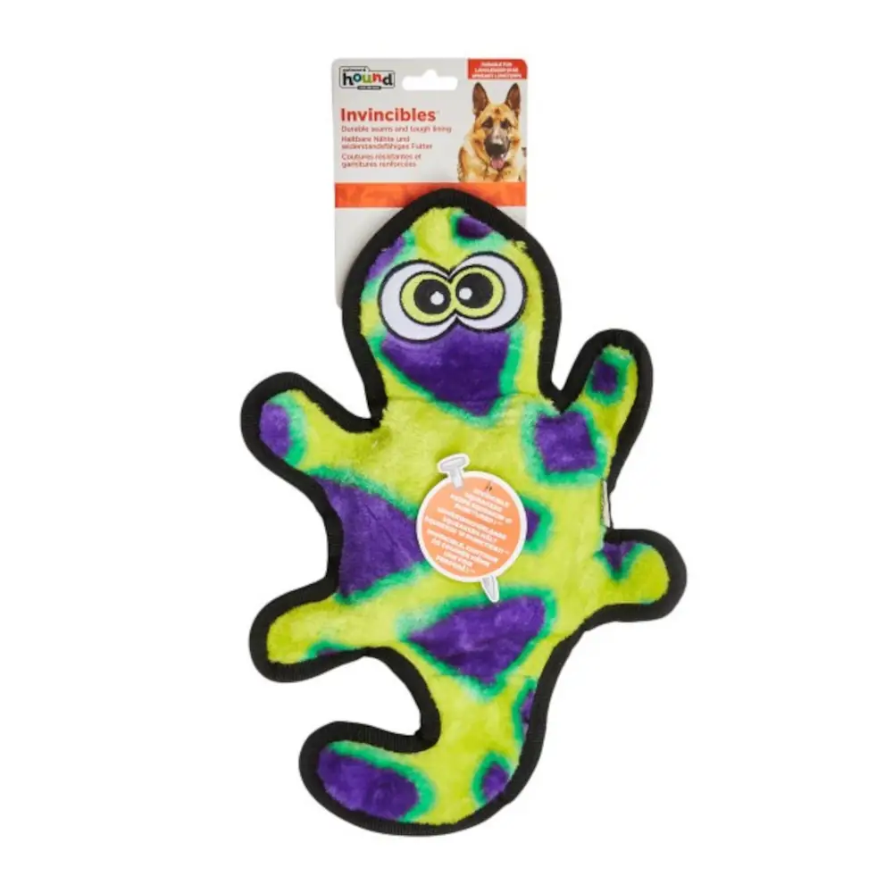 Az Outward Hound Invincibles Green Gecko azoknak a kutyáknak készült, akik nem bánnak kesztyűs kézzel a játékaikkal. Bár kívülről aranyos, plüss megjelenésű, belül komoly technikai megoldásokat rejt, hogy a játék hosszabb ideig bírja az intenzív igénybevételt.