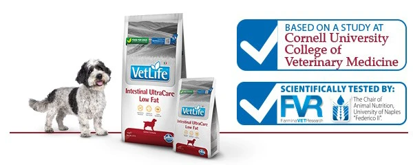 A Farmina VetLife termékcsalád legújabb tagja, az Intestinal UltraCare Low Fat kifejezetten a krónikus enteropátiával diagnosztizált kutyák igényeire lett kifejlesztve.